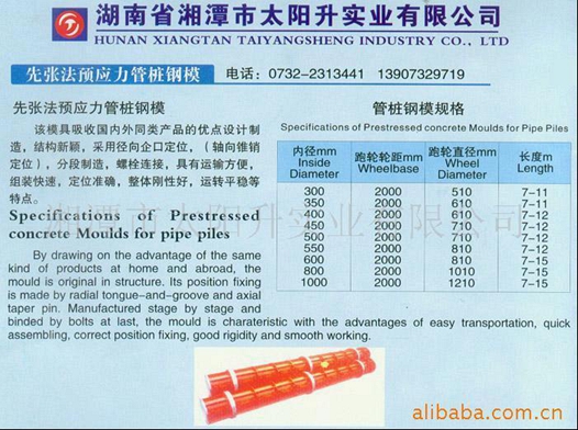 先張法預應力管樁鋼模 該模具吸收國內外同類產品的優(yōu)點設計制造,結構新穎,采用徑向企口定位,分段制造,螺栓連接,具有運輸方便,組裝快速,定位準確,整體剛性好,運轉平穩(wěn)等特點。